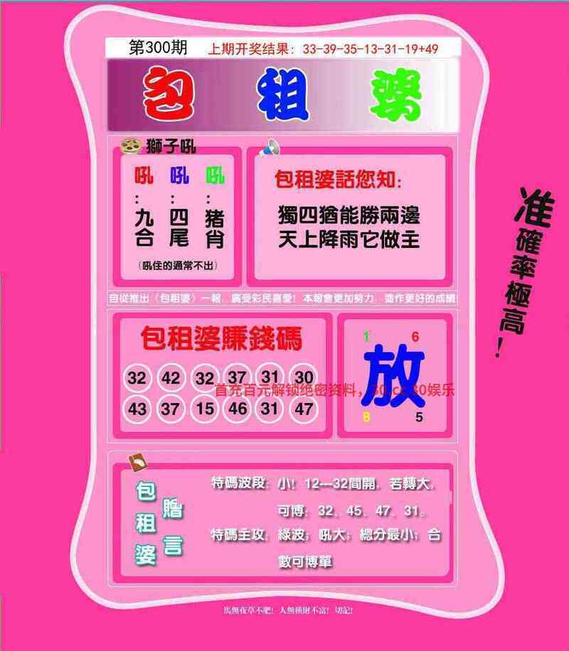 300期:单双中特〖双数〗开:虎40准